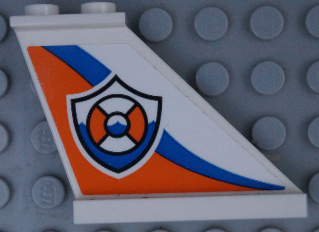 2340pb068R – Tail 4 x 1 x 3 with Coast Guard Logo on Orange and Blue Curved Stripes Pattern Model Right Side (Sticker) – Set 60164