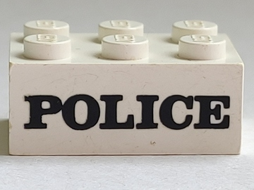 3002oldpb06 – Brick 2 x 3 with Black ‚POLICE‘ Serif Bold Pattern (Embossed)