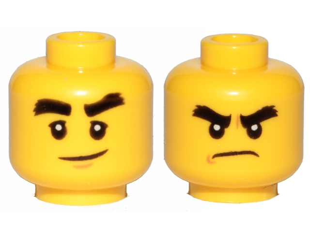 3626pb1893 – Minifigure, Head Dual Sided Black Bushy Eyebrows, Smile / Angry Pattern (Cole)