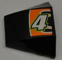 64225pb003 – Wedge 4 x 3 Triple Curved No Studs with White Number 4 and White Line on Black and Orange Background Pattern (Sticker) – Set 8125