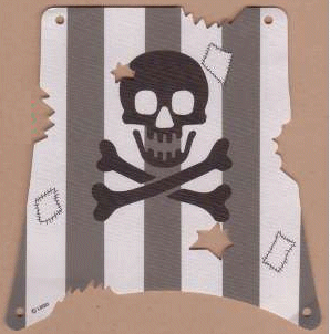 71305 – Cloth Sail with Cannonball Damage with Dark Gray Stripes and Black Skull and Crossbones Pattern