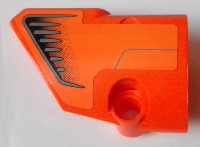 87080pb049 – Technic, Panel Fairing # 1 Small Smooth Short, Side A with Black and Dark Bluish Gray Vents on Orange Background Pattern (Sticker) – Set 9398